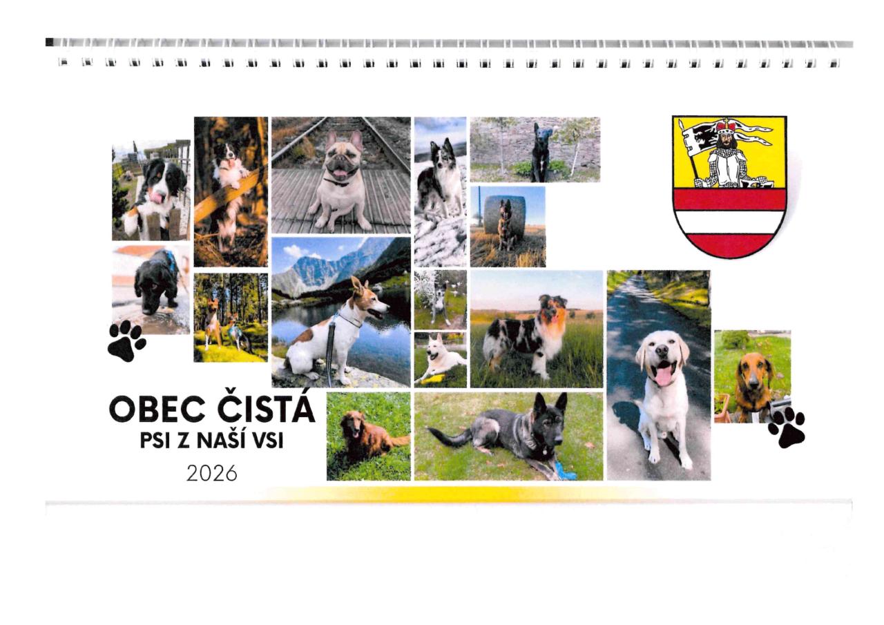 Oznamujeme, že je k prodeji týdenní kalendář na rok 2026 "Psi z naší vsi". Zakoupit si ho můžete v kanceláři OÚ u p. Králové za cenu 100,- Kč.