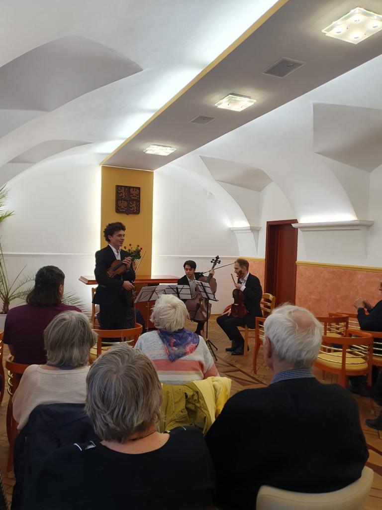 V neděli 17. 11. 2024 jsme společně s Primátor kvartet strávili sváteční odpoledne v opravdu sváteční náladě. Měli jsme možnost obdivovat um 4 studentů pražské konzervatoře, kteří rozehráli díla slavných hudebních mistrů na dvoje housle, violu a violoncello.